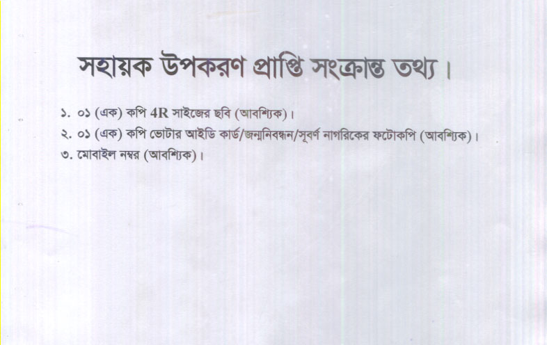 সহায়ক উপকরণ প্রাপ্তি সংক্রান্ত তথ্য।