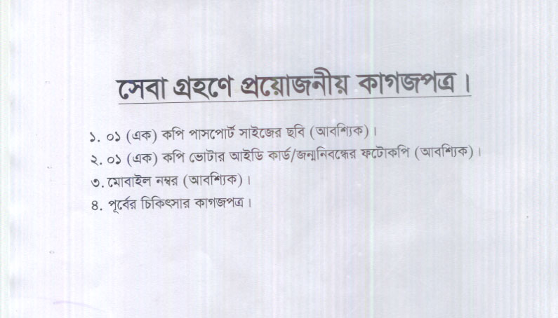 সেবা গ্রহণে প্রয়োজনীয় কাগজপত্র।